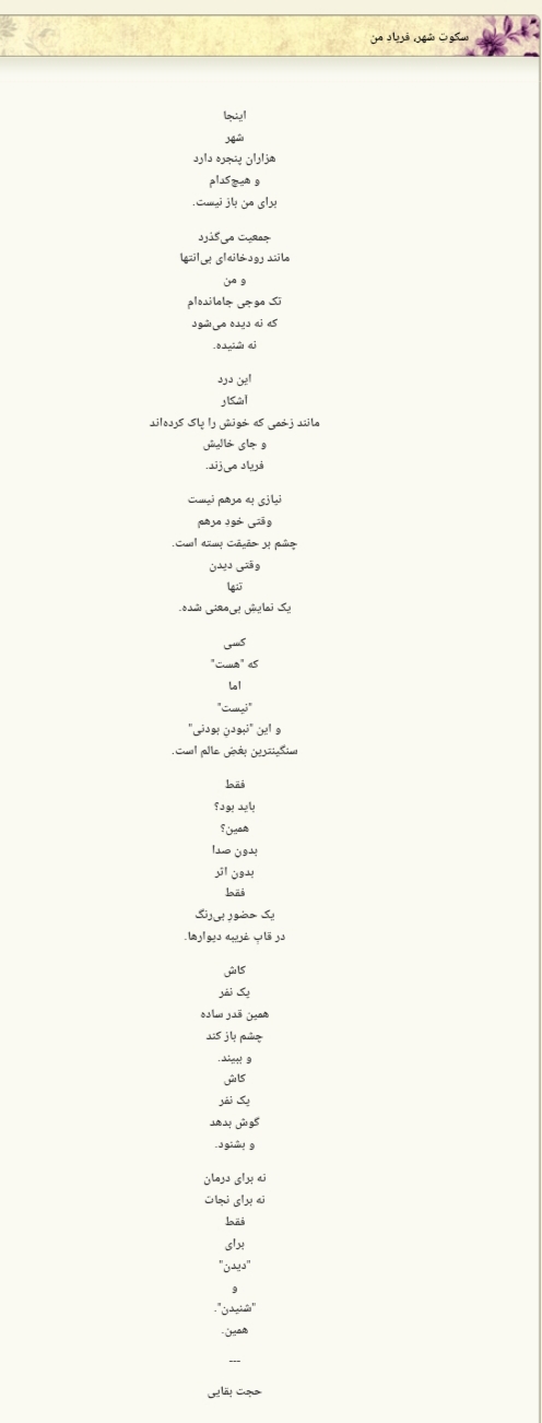 سکوتِ شهر، فریادِ من