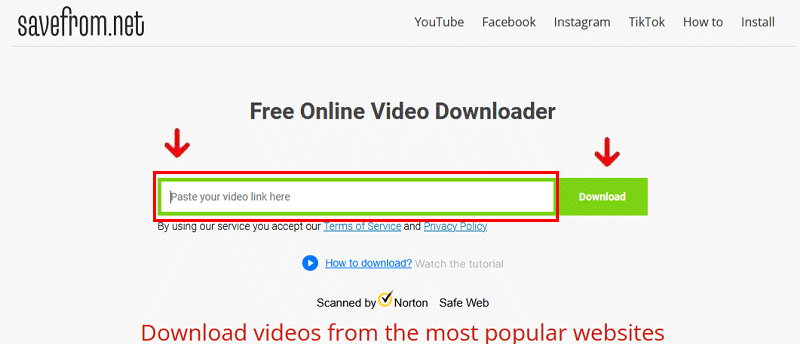 به سایت savefrom.net بروید و لینک ویدیو را در کادر مشخص وارد کنید و سپس روی دکمه Download بزنید.
