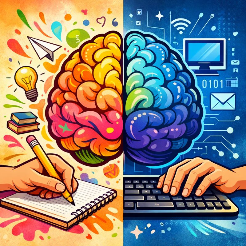 در مقابل، تایپ سریعتر است و مناسب ثبت حجم زیاد اطلاعات، اما مغز فرصت پردازش عمیق را ندارد و در نتیجه یادگیری سطحی اتفاق میافتد. این تفاوت میتواند توضیح دهد که چرا بسیاری از دانشجویان و پژوهشگران برای یادداشتبرداری تحلیلی و یادگیری مفهومی، هنوز قلم و کاغذ را ترجیح میدهند.