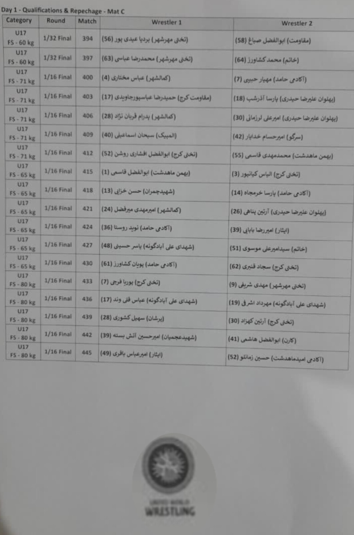 60 kg | U17 | Match 397 | 🔴63×🔵64