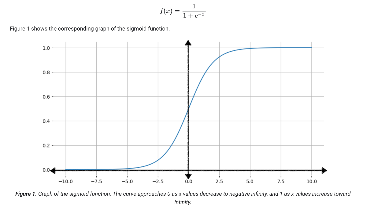 ممکن است با خود فکر کنید که یک مدل رگرسیون لجستیک چطور میتواند مطمعن شود که خروجی اش یک احتمال را نشان میدهد و همیشه مقداری بین ۰ و ۱ باز میگرداند. یک سری توابع وجود دارند به نام توابع لجستیک که خروجیشان این قابلیت را دارد. یک تابع استاندارد لجستیک شناخته شده وجود دارد به نام تابع سیگموید (تابع S شکل) که این فرمول را دارد: