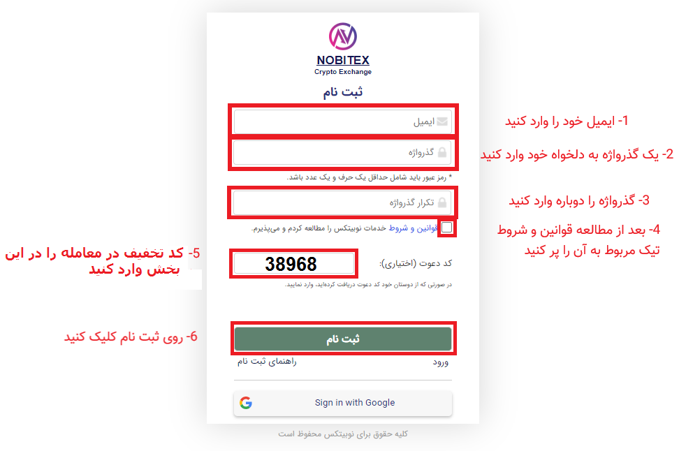 برای ثبت نام در نوبیتکس از کد دعوت 38968 استفاده کنید.