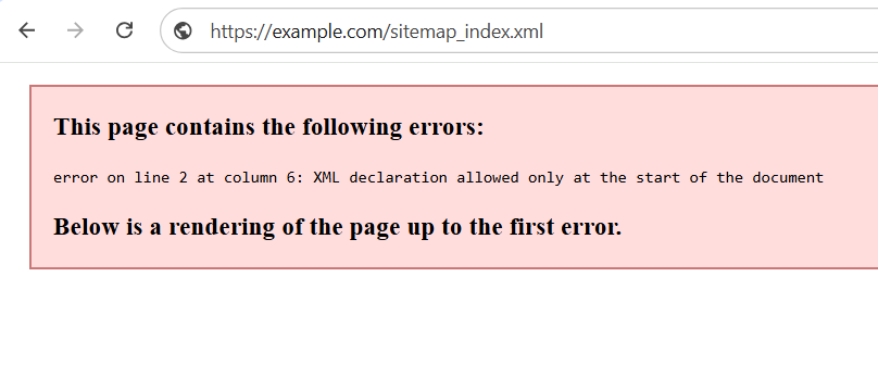 خود متن خطا به وضوح می گوید که XML به جای خط اول، از خط دوم شروع شده و به عبارتی یک خط خالی قبل از آغاز تگ xml سایت قرار گرفته. اگر با کلیدهای Ctrl + U سورس کُد نقشه سایت را بررسی کنیم، به روشنی می توانیم مشکل را ببنیم: