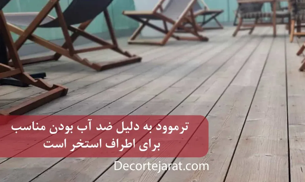 کفپوش ترمووود: این نوع کفپوش به دلیل مقاومت در برابر تغییرات دما، رطوبت و تابش خورشید، برای فضاهای باز و خارجی مانند تراسها، حیاطها و کنار استخرها بهترین انتخاب است.