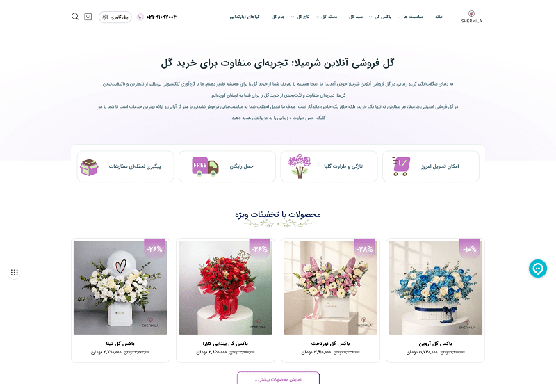 گل فروشی آنلاین شرمیلا بیشتر در زمینه فروش گل های مناسبتی، دسته گل و باکس گل فعال بوده و گزینه هایی هم برای مناسبت هایی مثل خرید گل روز پدر، تولد، سالگرد و هدیه های روزمره ارائه می دهد.
