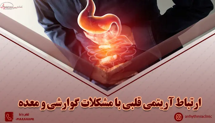 آریتمی قلبی و مشکلات معده، میتوانند بهطور غیرمستقیم با یکدیگر مرتبط باشند. استرس و اضطراب، که معمولاً ناشی از مشکلات گوارشی مانند سوءهاضمه یا زخم معده است، میتواند تأثیر قابل توجهی بر عملکرد قلب داشته باشد. در این شرایط، ترشح هورمونهای استرس مانند آدرنالین افزایش مییابد که ممکن است منجر به تپش قلب و آریتمی شود.(منبع: کلینیک آریتمی توانیر)