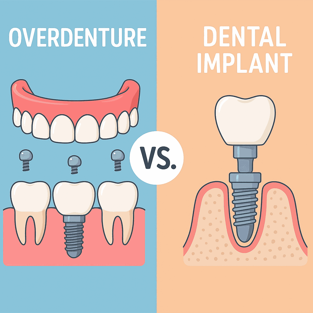 هر دو روش مزایا و معایب خاص خود را دارند. اوردنچرها به دلیل متحرک بودن، تمیز کردن آسانی دارند و هزینه کمتری نیاز دارند. اما ممکن است در هنگام صحبت یا غذا خوردن جابهجا شوند. همچنین، نیاز به تعویض دورهای پروتز میتواند یک نقطه ضعف باشد.
