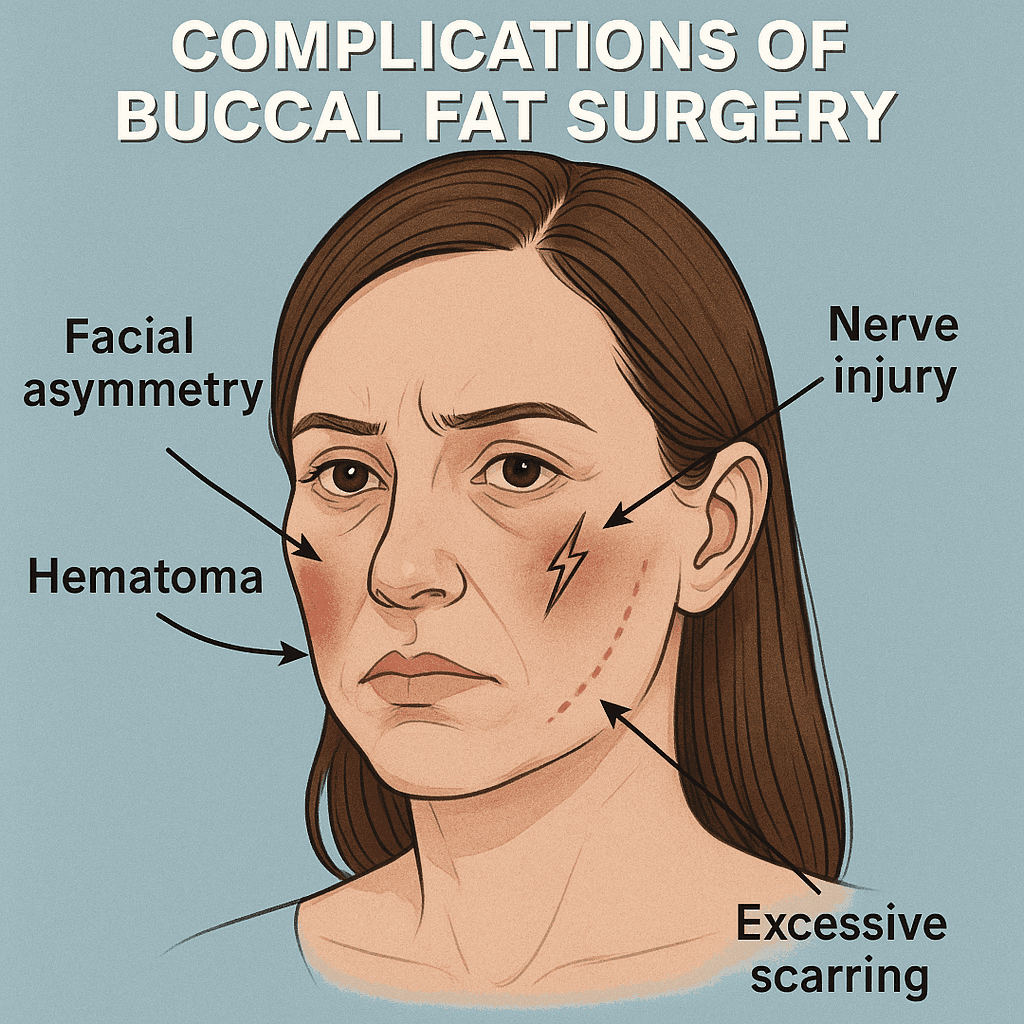 برداشتن چربی بوکال در برخی بیماران میتواند منجر به عدم تقارن صورت شود. این حالت زمانی رخ میدهد که مقدار چربی برداشتهشده در دو طرف صورت یکسان نباشد. همچنین اگر تورم یا فیبروز بعد از عمل در یک سمت بیشتر باشد، ظاهر صورت را نامتعادل نشان میدهد. گرچه این مشکل در بسیاری از موارد با گذر زمان بهتر میشود، اما در برخی بیماران ممکن است نیاز به جراحی اصلاحی وجود داشته باشد. انتخاب جراح با تجربه میتواند از بروز این عارضه جلوگیری کند.