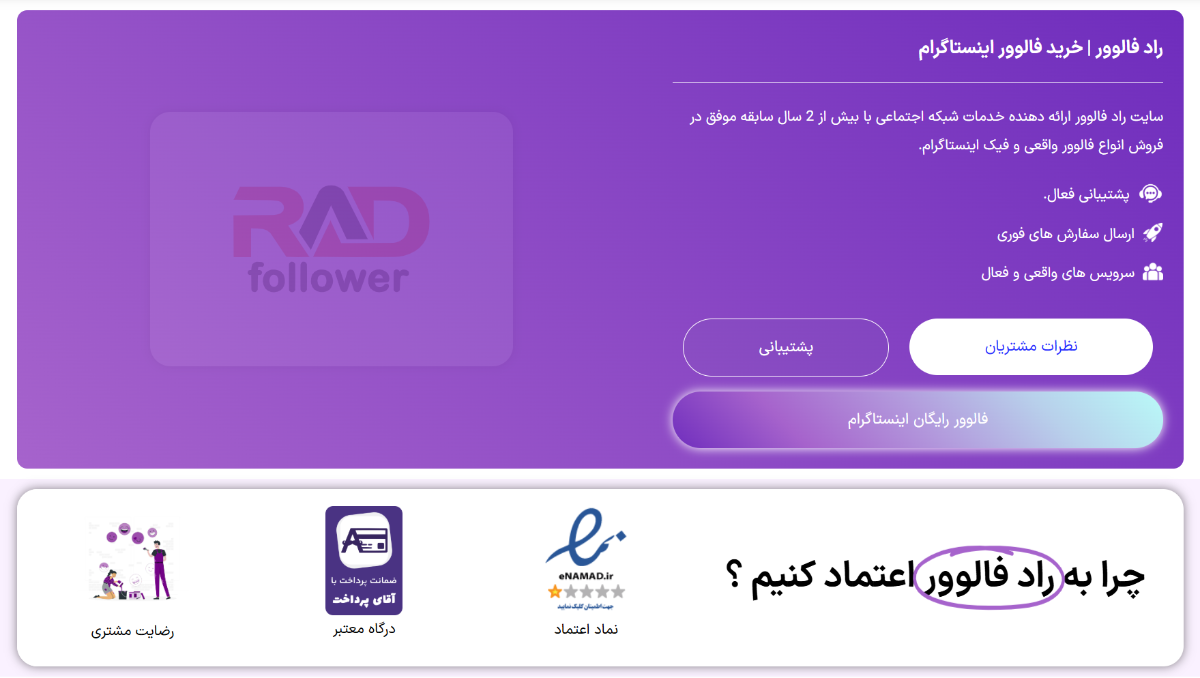 راد فالوور به عنوان یکی از پیشگامان در ارائه خدمات فروش فالوور و افزایش تعامل در شبکههای اجتماعی، با توجه به ارائه راهکارهای متنوع و با کیفیت و پشتیبانی قوی، انتخاب مطمئنی برای کاربرانی است که به دنبال رشد سریع و موثر در فضای مجازی هستند. انتخاب یک سرویس معتبر همچون راد فالوور نه تنها به افزایش عددی دنبالکنندگان کمک میکند، بلکه منجر به بهبود کیفیت تعاملات و ارتقای اعتبار آنلاین میشود.