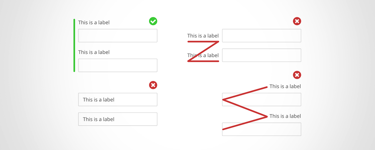 ۶. برچسبها(لیبل) را بالای فیلدها در فرم قرار دهید، نه در سمت چپ آنها.حتی در طرحبندیهای تک ستونی، معمولاً برچسبهای فرم در سمت چپ ناحیه ورودی قرار میگیرند.