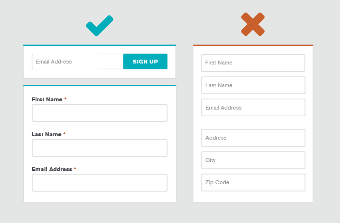 ۱.فرم ها را مختصر نگه دارید اینگونه از سردرگمی کاربران جلوگیری می کنید.از اضافه کردن فیلدهای اضافی خودداری کنید.اگر اطلاعاتی اختیاری هستند چرا در فرم قرار می دهید؟ هر چه فرم کوتاه تر و مختصر تر باشند, تجربه کاربر و انگیزه بالاتر می شود.