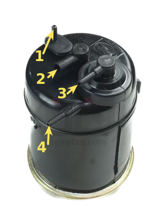 یکی به شیر یکطرفهی هوا (به رنگ سبز و سفید هستند) و سپس بعد از آن به قابلمهی فیلتر هوا -