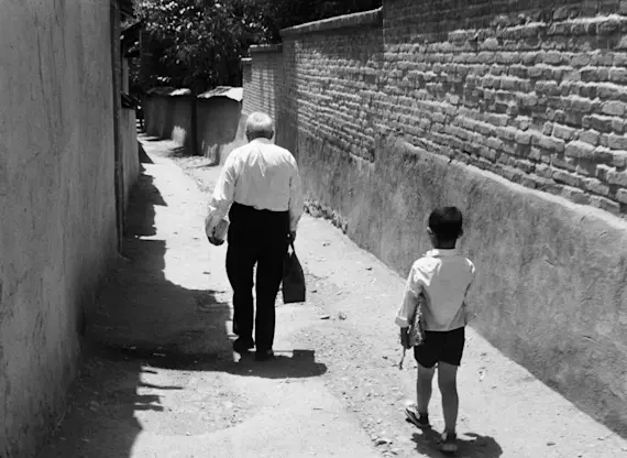 سپس پیرمردی از ته کوچه ظاهر میشود. دوربین در نمایی لانگشات او را دنبال میکند. پیرمرد آرام و بیاعتنا پیش میآید، گویی از جهانی دیگر آمده است. پسر بچه پشت سر او به راه میافتد تا از حضورش برای گذشتن از کوچه استفاده کند. اما ناگهان پیرمرد وارد خانهای میشود و پسر دوباره تنها میماند.