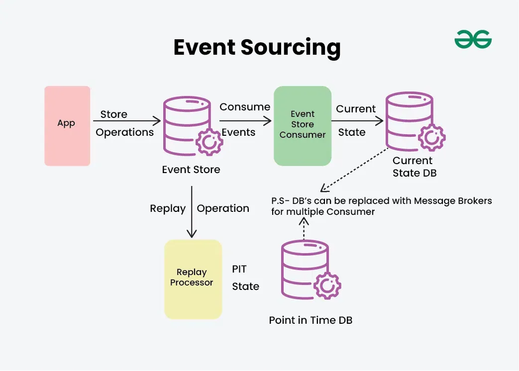 رویکرد Event Sourcing رویکردی است که در آن تغییرات سیستم بهطور مستقیم بهعنوان رویدادها (Events) بهجای وضعیت نهایی دادهها ذخیره می شوند، در این معماری، هر تغییری که در سیستم ایجاد شود، بهصورت یک رویداد ثبت شده و بهطور دائم نگهداری میشود. برای بازسازی وضعیت سیستم در هر لحظه از زمان، فقط کافیست شما رویدادهای مربوطه رو دوباره پردازش کنید. این رویکرد معمولا در سیستمهای پیچیده و نیازمند بهدقت بالا استفاده میگردد که باید تمام تغییرات و تاریخچهی آنها رو برای پیگیری یا بازیابی اطلاعات داشته باشیم. یکی از بزرگترین مزایای Event Sourcing اینه که بهراحتی میتونید تاریخچه کامل تغییرات سیستم رو داشته باشید و در صورت نیاز، بهراحتی سیستم رو به هر نقطهای از زمان برگردانیم و اطلاعات را از آن لحظه مورد پیگیری قرار دهیم. به همین خاطر میتوان گفت، این رویکرد میتواند به کاهش خطاها و بهبود شفافیت سیستم کمک شایانی بنماید. در مقابل، نگهداری تعداد زیادی رویداد ممکن است در طولانی مدت باعث بروز مشکلاتی در کارایی سیستم شده و همچنین برای تیمهای توسعه، مدیریت و نگهداری این رویدادها میتواند پیچیده باشد و باعث ایجاد دشواری در گزارشگیری مستقیم شود.