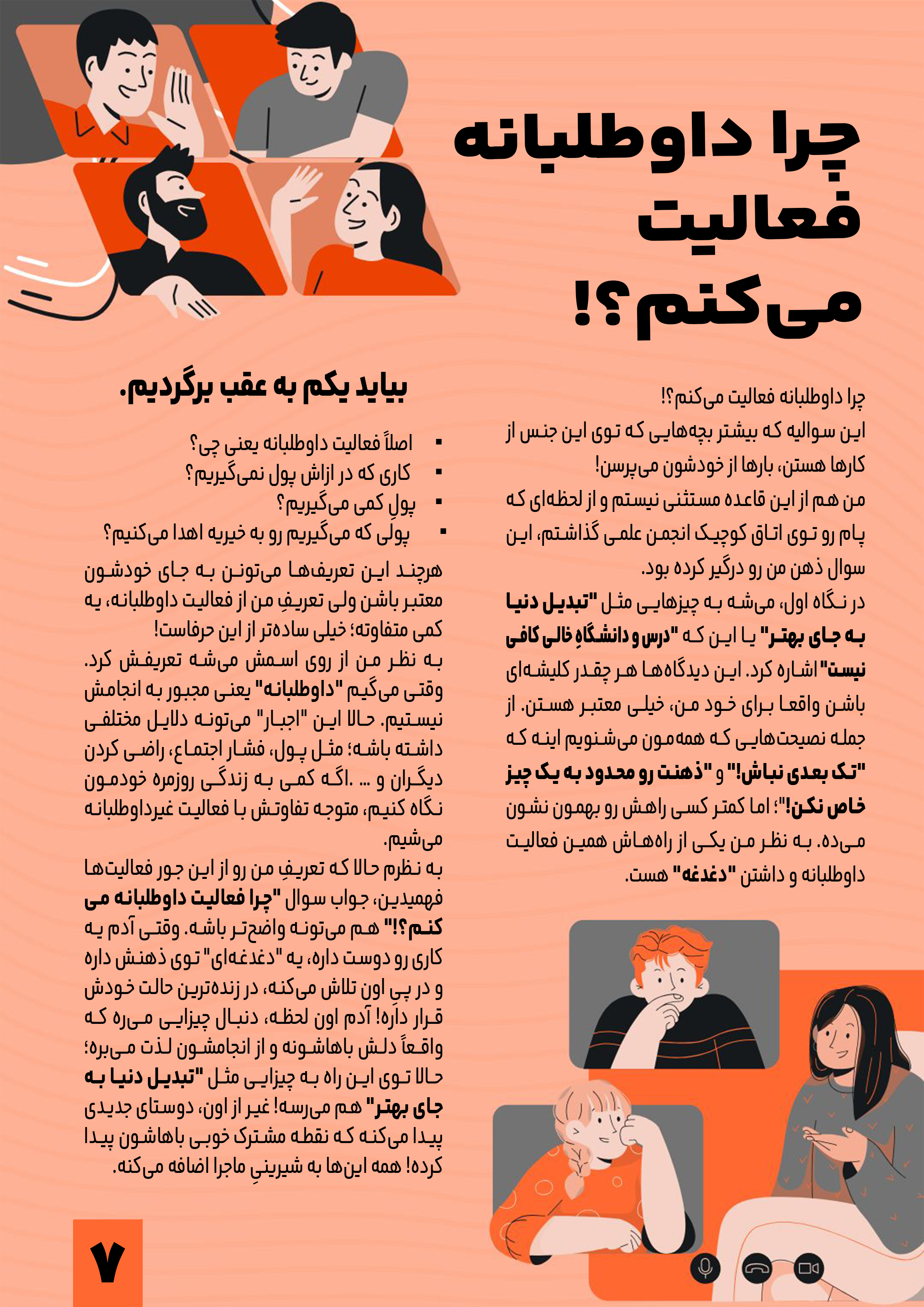 دوست دارین درباره فعالیتهای داوطلبانه و تاثیرشون داخل زندگی و روحیهمون و نحوه نگرش عمومیمون نسبت بهش، چیزی بخونین؟