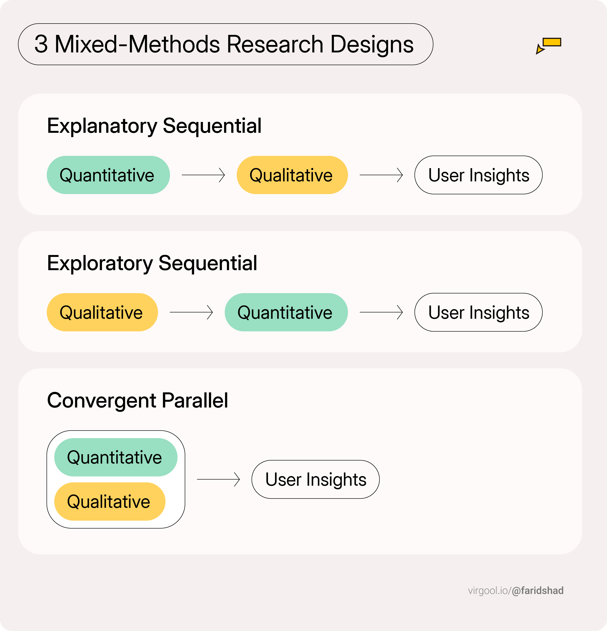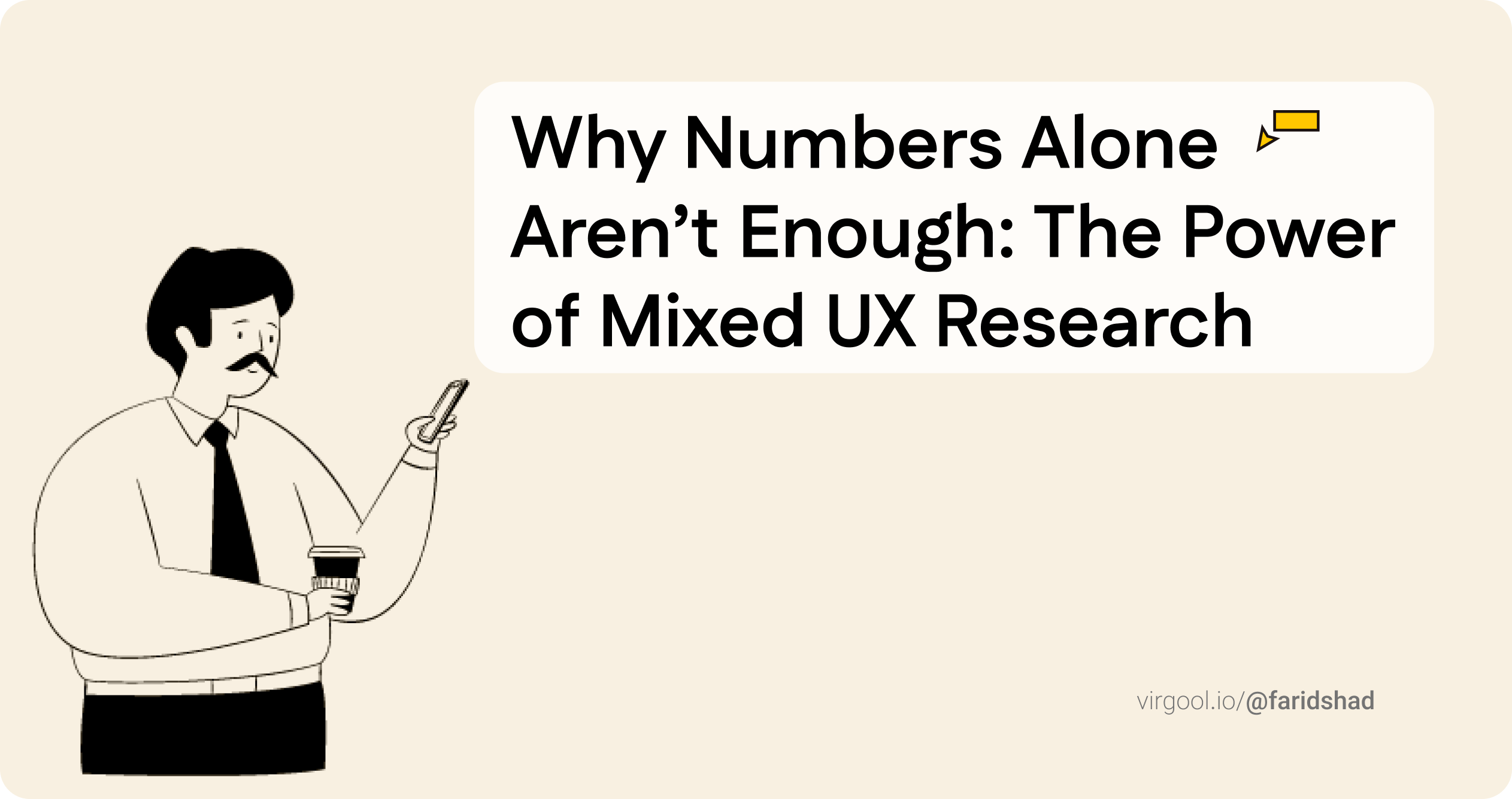 تکیه بر یک روش تحقیق واحد – صرفاً کمی یا کیفی – باعث میشود تصویر ناقصی از تجربه کاربر بهدست آید. روشهای کیفی میتوانند به ما بگویند چرا چیزی اتفاق میافتد؛ در حالی که روشهای کمی به ما میگویند چه مقدار، چه زمانی، کجا، و چند بار اتفاق افتاده است.