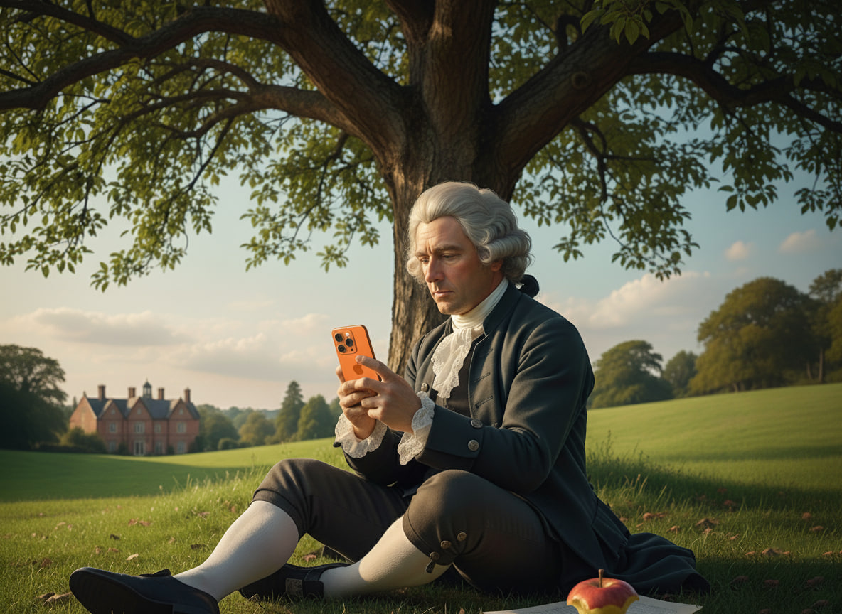 روزی که نیوتون زیر درخت نشسته بود و سیب افتاد ، سیب رو برمیداشت و یه گاز میزد و همچنان به اسکرول کردن ادامه میداد