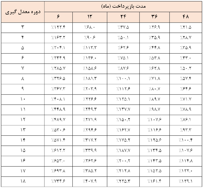 در جدول زیر دوره معدل گیری و مبلغ وام طرح وزین شهر به صورت کامل شرح داده شده است.