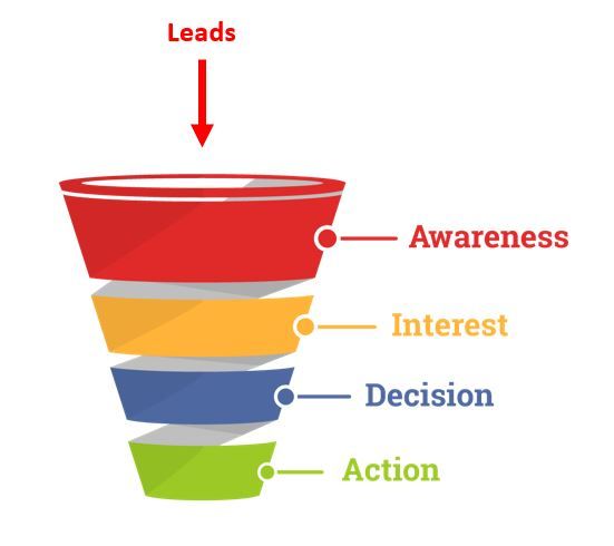 گفتم مشکل از اونجایی شروع میشه که قیف فروش مشخص نیست. اول بگم قیف فروش چیه. قیف فروش شکلهای مختلفی داره و هرکس برای مراحلش با توجه به نیازش یه سری تعریف اضافه میکنه. ولی به صورت جنرال و کلی میشه قیف فروش رو به چند مرحله اصلی تقسیم کرد: