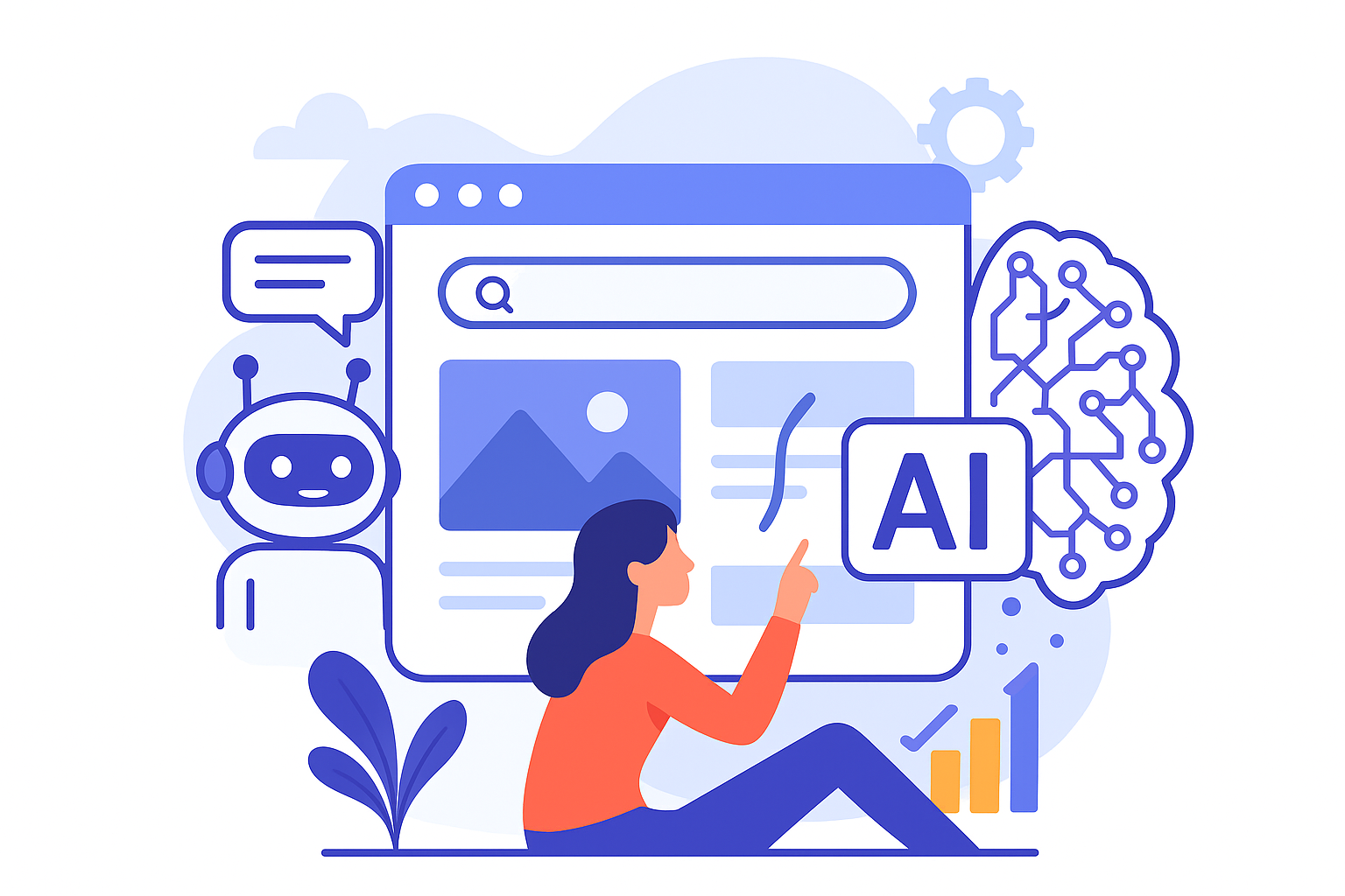 یکی از اولین نشانههای حضور AI در وبسایتها، چتباتهای هوشمند هستند. دیگر نیازی نیست کاربر برای یک سوال ساده منتظر اپراتور بماند. هوش مصنوعی میتواند: