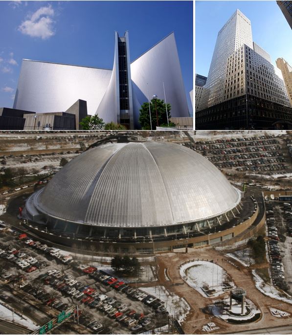 از دهه 1950 میلادی به بعد گسترش عمده ساختمان سازی با استفاده از استنلس استیل را شاهد بوده ایم. ساختمان Socony-Mobil (1956)، سقف کلیسای جامع سنت مری توکیو (1961) و ملون آرنا در پیتزبورگ (1961)