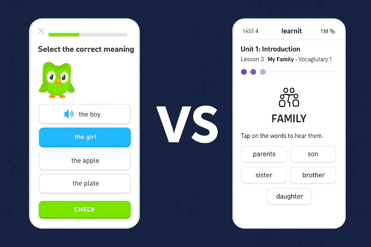 سلام سلام. شده بخوای با اپلیکیشن، زبان یاد بگیری و اسم اپلیکیشنهای مختلف رو بشنوی، اما نمیدونی کدومو انتخاب کنی؟ احتمالا اسم لرنیت و دولینگو زیاد به گوشت خورده. بیا یه مقایسهٔ صاف و پوستکنده بکنیم تا بتونی تصمیم بگیری و برنامه مناسبت رو پیدا کنی!