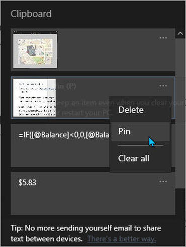 در نسخه های قدیمی ویندوز ما فقط میتونستیم یک چیز رو داخل کلیپ بوردمون داشته باشیم که خیلی کار رو سخت میکرد و باعث میشد هی بین دو تا پنجره یا تب اینور و اونور بریم ولی در نسخه جدید ویندوز ده میتونیم تا 25 متن یا عکس کپی شده داخل کلیپ بورد رو ببینیم و به راحتی ازشون استفاده کنیم حتی میتونیم بعضی چیز ها رو پین هم بکنیم(مثلا اگر در شبکات اجتماعی فروش دارید این میتونه شماره کارتتون یا آدرس مغازتون باشه)