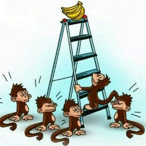 ممیمون ها بعد از یک مدت اگه کسی از نرده بون بالا بره موز برداره و آب سرد روشون بریزه اون میمون رو شروع می کردن به زدن