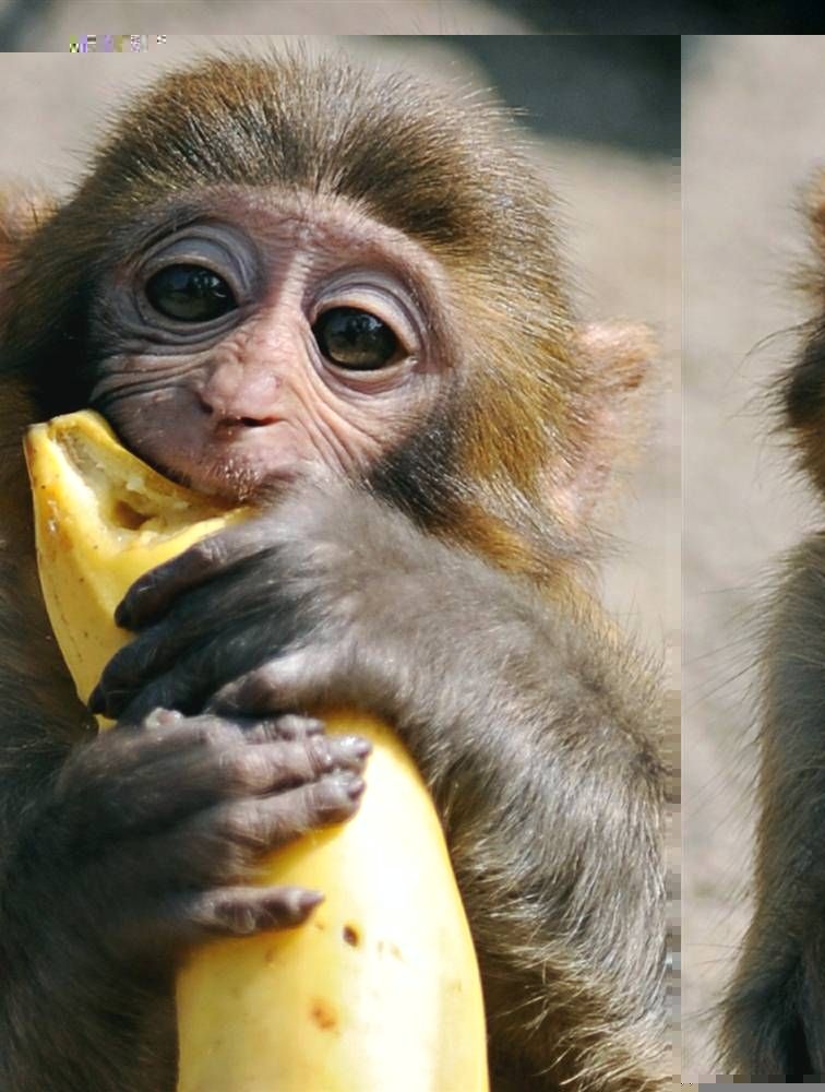 و اون میمون میره و یک موز بر میداره و این بار جالبه اون میمون جدید هم شروع میکنه به زدن این میمون تازه وارد