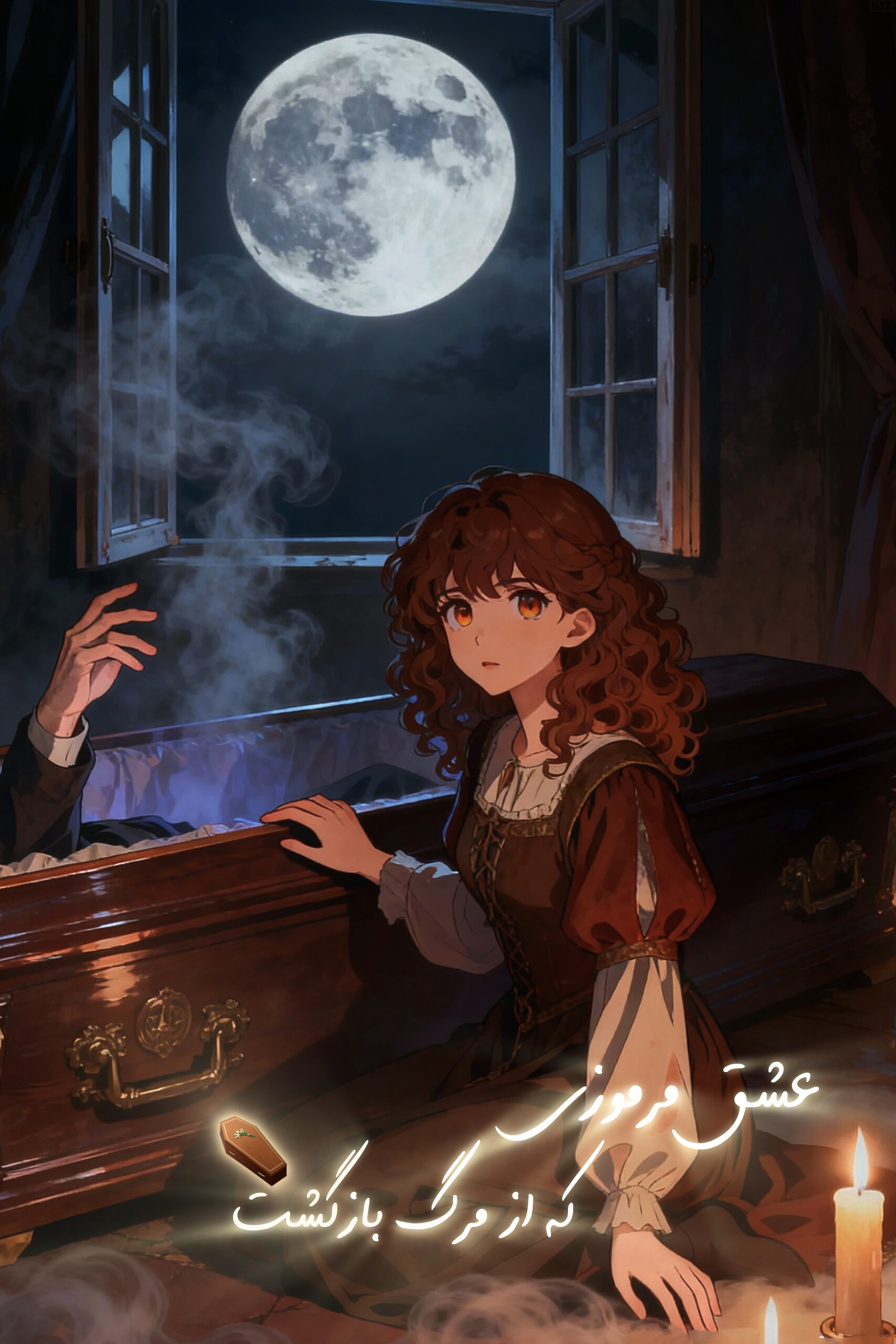 شب که فرا رسید، الورا دوباره در اتاقش نشست کتاب جادوی ممنوعه جلویش باز بود، شمعها اطرافش روشن بودند، اما نورشان دیگر آرامش نمیآورد صدای قدمهای آرام از پشت در پیچید در باز شد و لوسین وارد شد لباس سفیدش هنوز بر تن داشت و قدمهایش سنگین و آهسته بود.