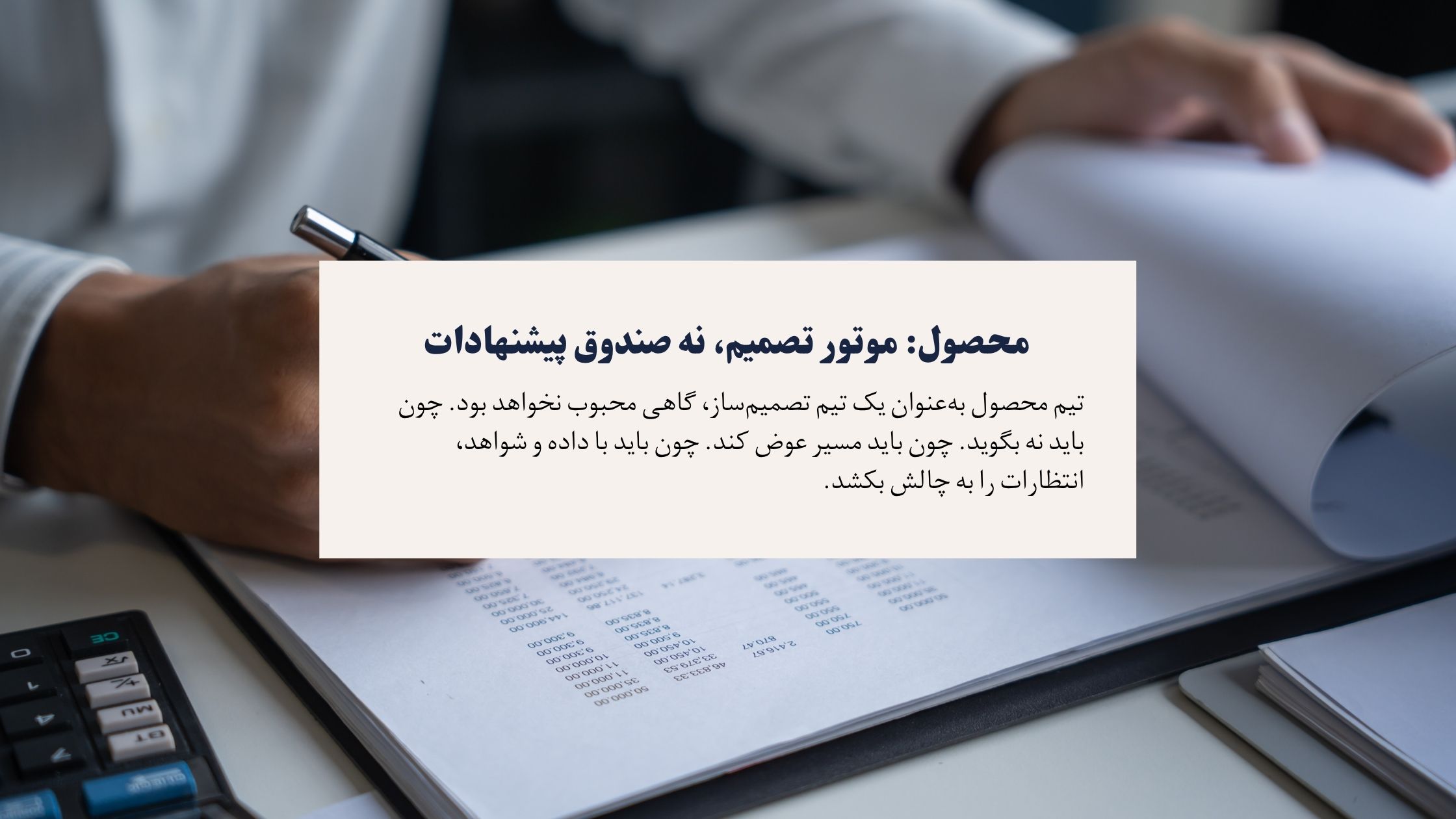 در واقع، تیم محصول باید مرکز تصمیمگیری برای مسیر آینده کسبوکار باشد؛ با استفاده از داده، بینش بازار، و درک عمیق از کاربر. اگر محصول فقط واکنش نشان بدهد، دیگر محصول نیست؛ پروژهای است که منتظر سفارش مینشیند.