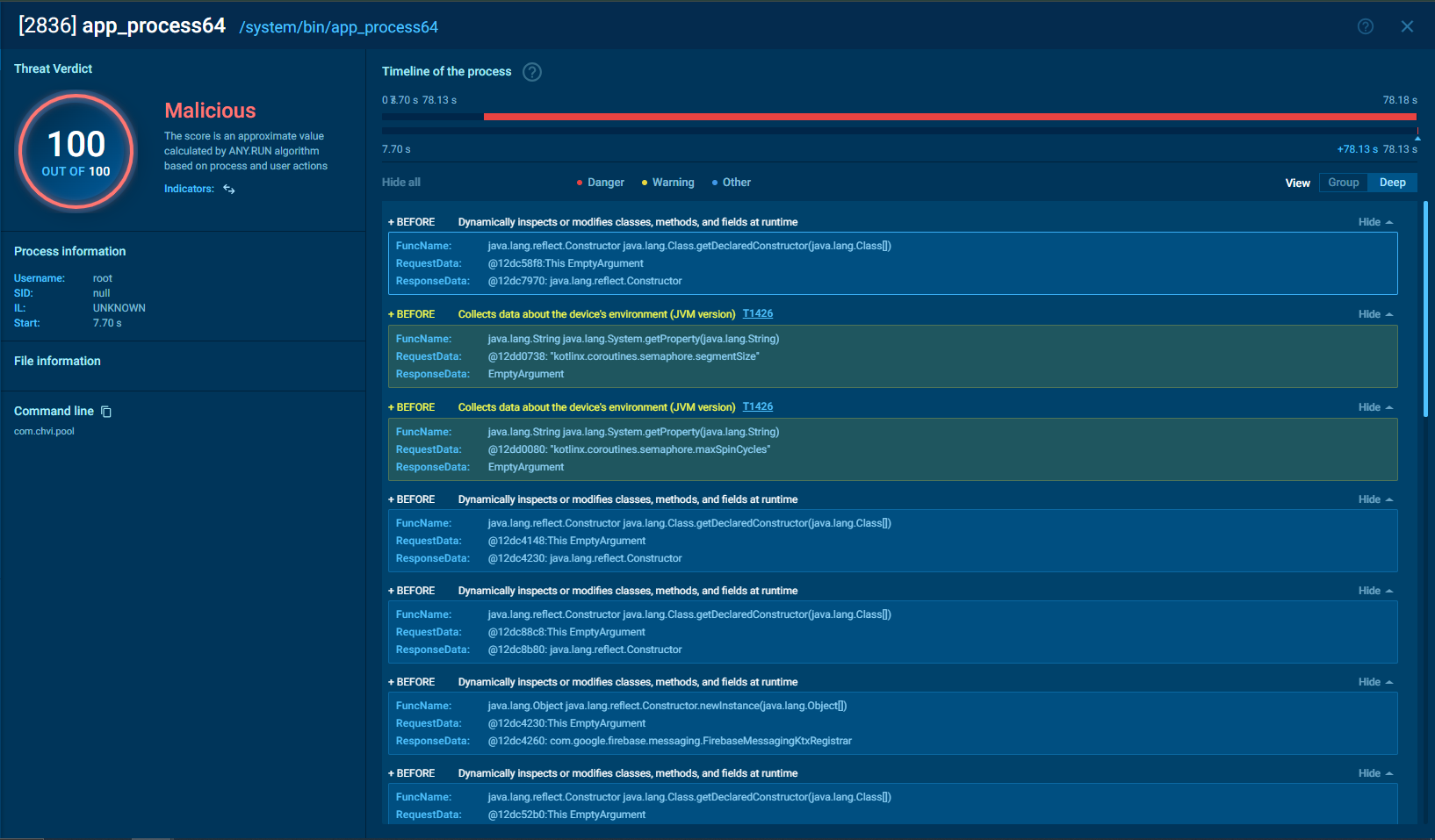 به دلایل مختلفی مثل چک کردن دیباگ، لوکیشن سیمکارت، نرمافزارهای نصب شده، و استفاده از WebView، هر کسی که این اپ رو نصب کنه ممکنه تجربه متفاوتی داشته باشه. تکنیک هوشمندانهای برای فرار از تشخیص عملکرد.