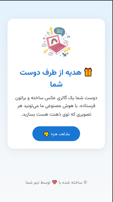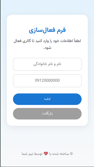 بعد از زدن روی این دکمه، از کاربر خواسته میشه که برای مشاهده هدیه، اسم و شماره تلفنش رو وارد کنه. اولین مرحله جمعآوری اطلاعات.