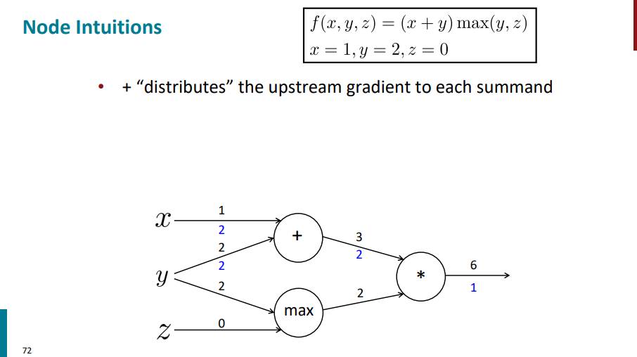 نودی که علامت جمع داره گرادیان لایه بالایی رو (گرادیان با رنگ آبی روی یالی که ازش خارج شده آورده شده) روی یالهای ورودی توزیع میکنه.