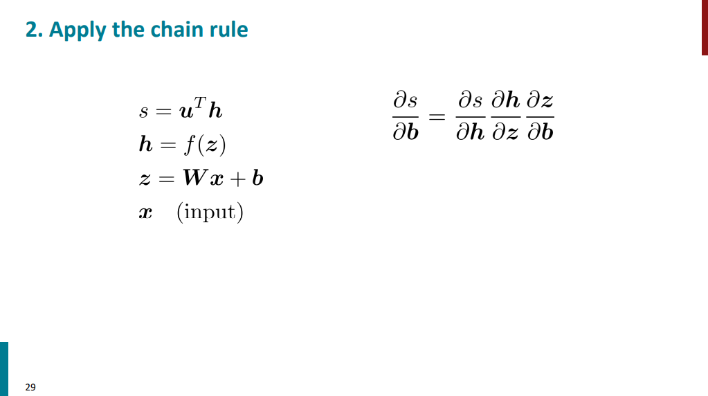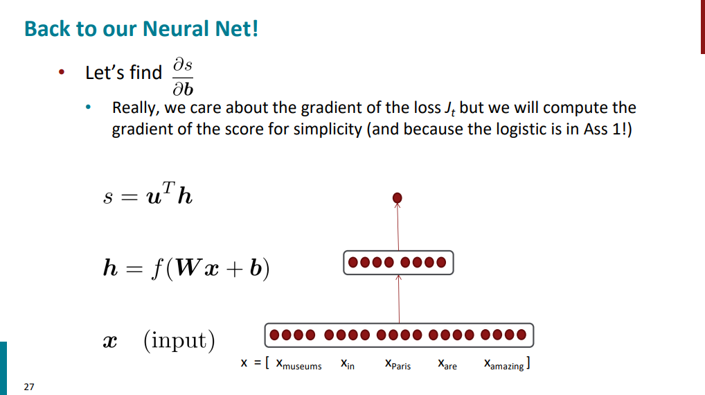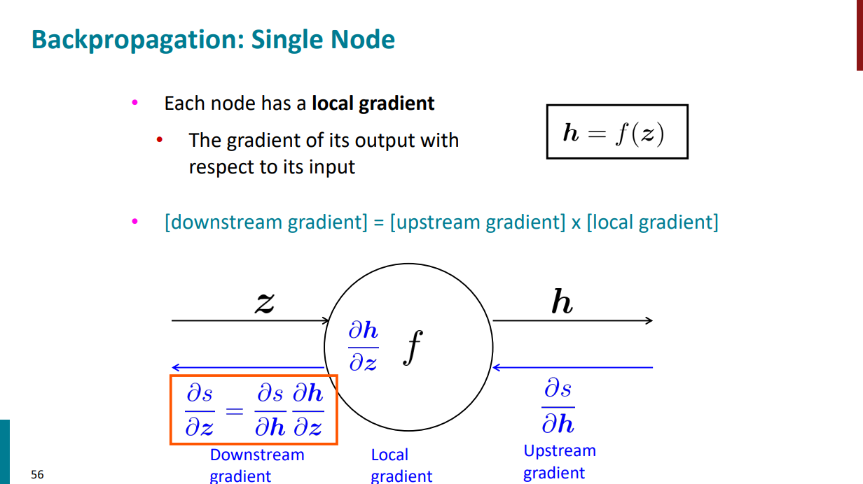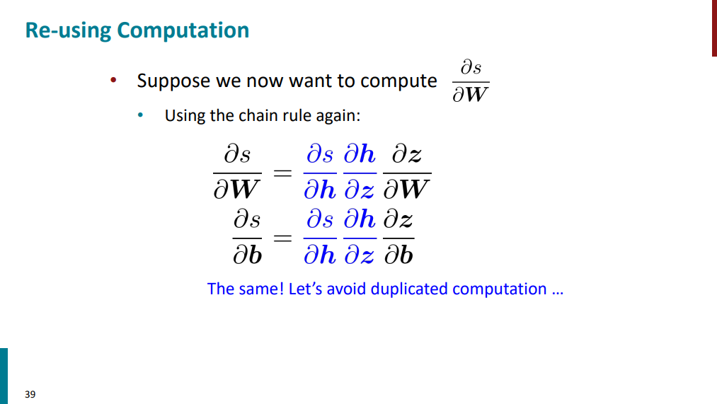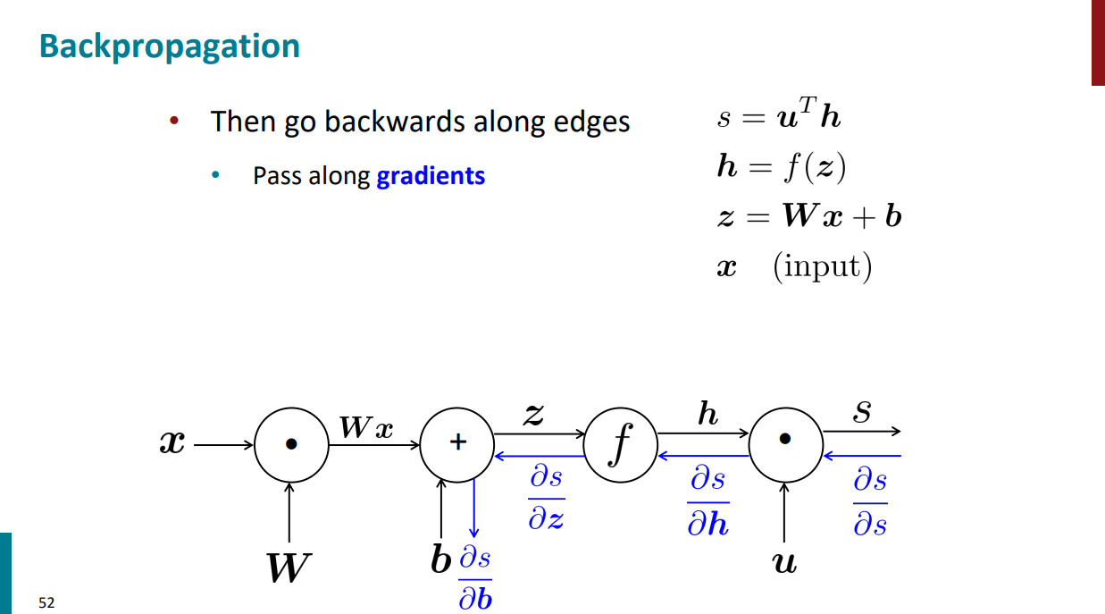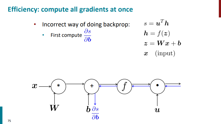 فرض کنید برای محاسبه گرادیان s نسبت به b بیایم مسیر آبی رنگ رو که تو اسلاید زیر آورده شده از راست به چپ طی کنیم.