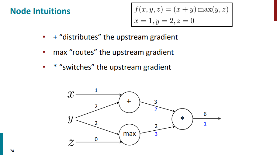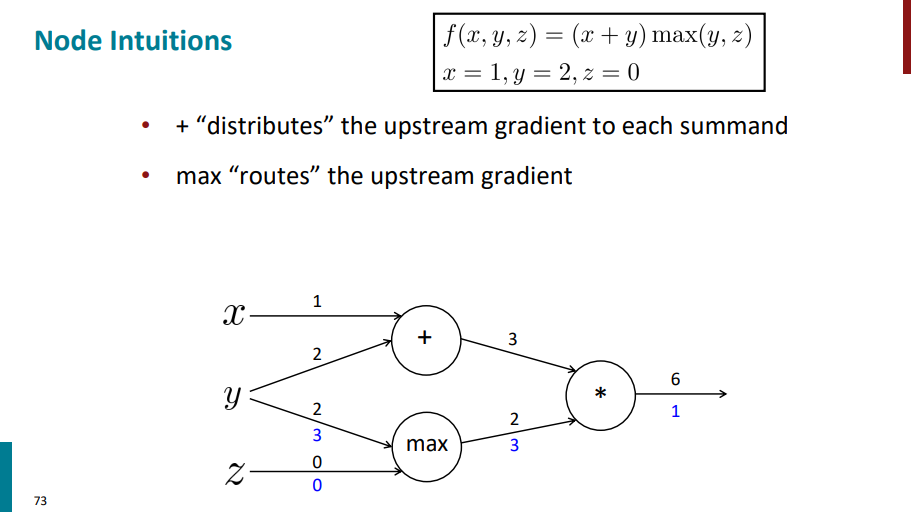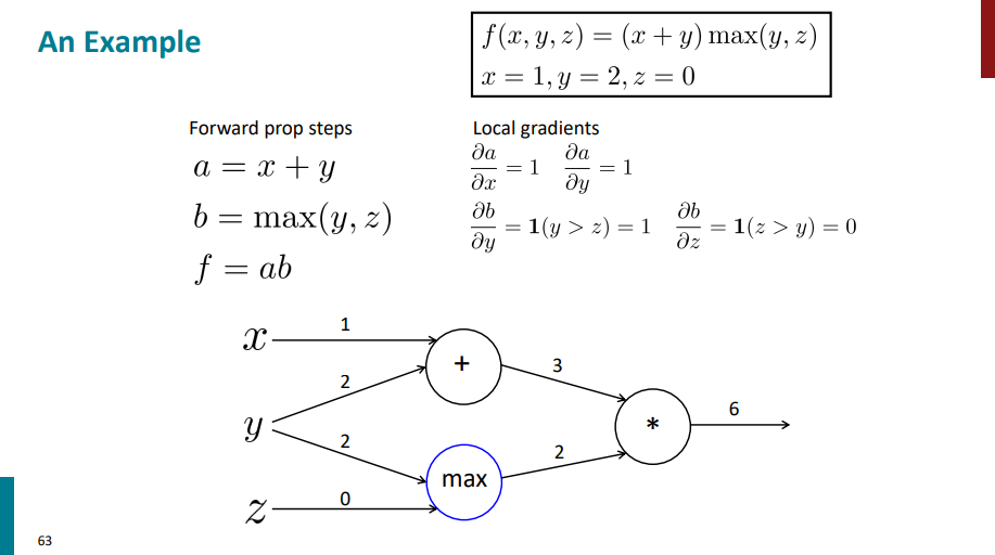 نودی که max داره مقدار گرادیان لایه بالاتر رو به یالی که عدد ورودی بیشتری داره اساین میکنه و یال دیگه مقدار گرادیانش 0 میشه.