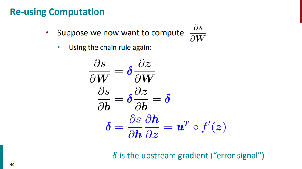 برای اینکه چند بار چند بار گرادیان تکراری حساب نکنیم، میایم برای هر مرحله یک بار گرادیان حساب میکنیم و گرادیان حساب شده رو داخل یک متغیر دیگه نگه میداریم (مثلاً خیلی بالاتر اومدیم متغیر دلتا رو معرفی کردیم). با این کار دیگه نیاز نیست هر دفعه گرادیان حساب کنیم. یک بار محاسبات انجام میشه، دفعههای بعدی از مقدار استفاده شده فقط استفاده میکنیم.