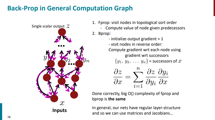 اگر تمام این کارها رو به درستی انجام بدیم، از نظر پیچیدگی زمانیِ محاسبات، الگوریتم f-prop با الگوریتم b-prop یکی میشه و هر دو از مرتبهی O(n) خواهند بود.