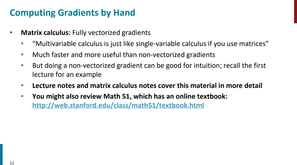 برای روش اول، یعنی محاسبه گرادیان به صورت دستی، باید با یک سری ماتریس و بردار و محاسبات ماتریسی سر و کله بزنیم که برای خیلیا این مباحث خیلی ترسناکه. اگه قرار باشه از ماتریسها استفاده نکنیم، باید از مشتقهای زنجیرهای استفاده کنیم که یک مثال رو هم ازش در جلسه اول دیدیم. ولی کار با ماتریسها و بردارها کار محاسبات رو خیلی برامون سریعتر و آسونتر میکنه، پس برای همین بهتره که یادشون بگیریم!