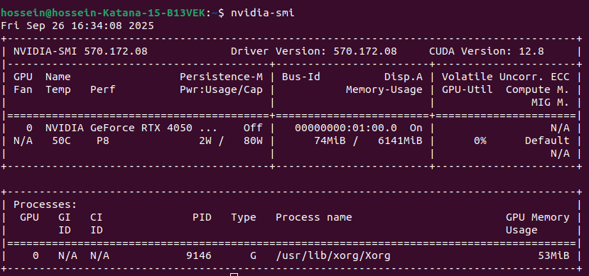 اگه GPU دارین دستورات زیر رو بزنید ببینید درایورش نصب هست یا نه