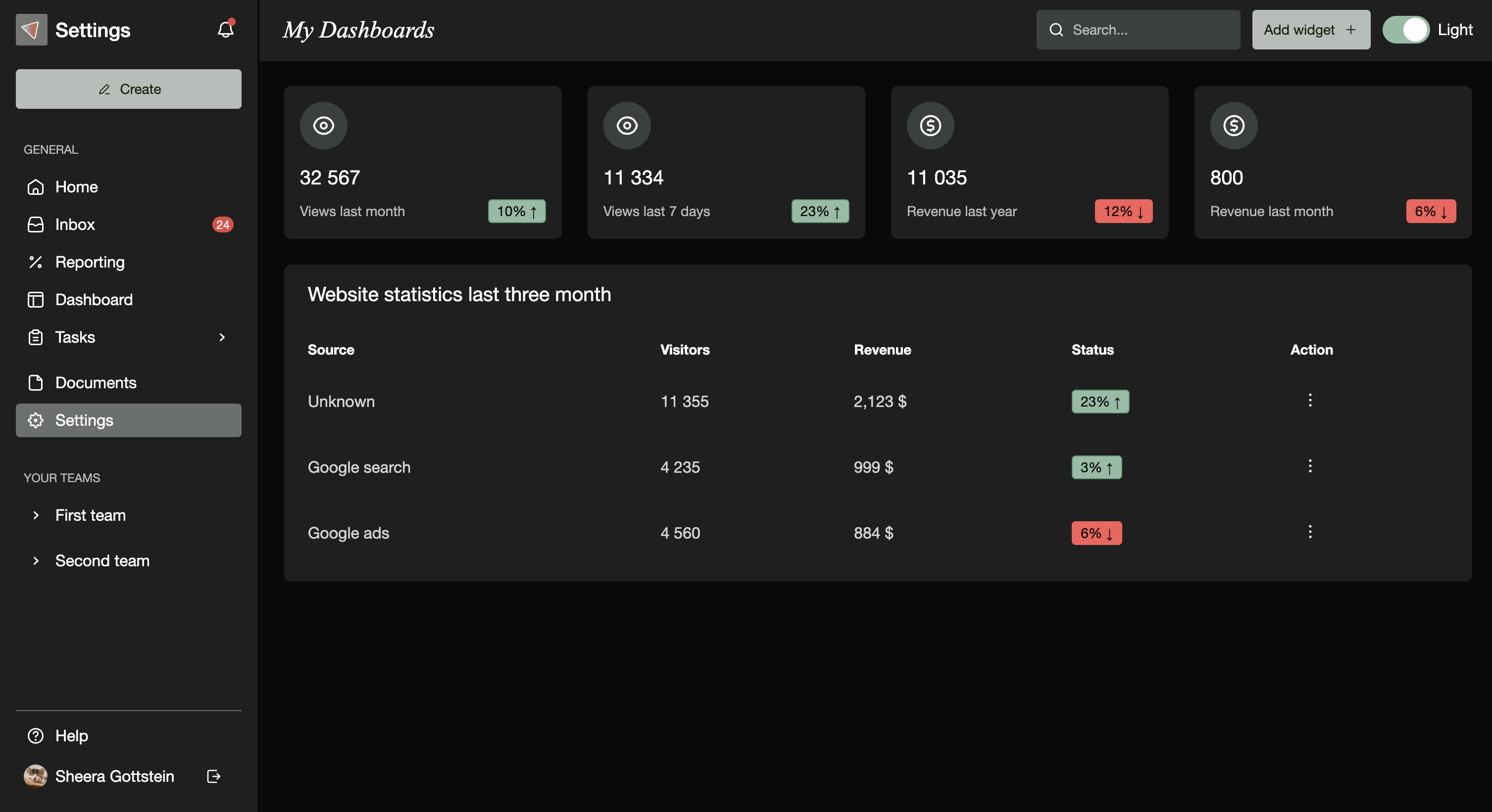 npm run startحالا باید روی لوکال http://localhost:3000 یه دشبورد خوشگل ببینید!