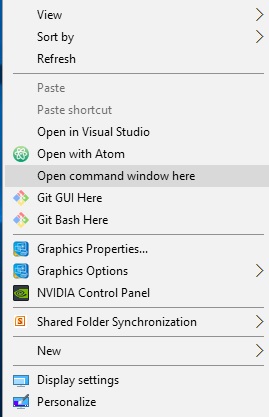 خب حالا یه پوشه خالی ایجاد کنید و داخل پوشه خالی با نگه داشتن کلین shift و راست کلیک کردن روی گزینه Open command window here کلیک کنید تا cmd باز بشه .