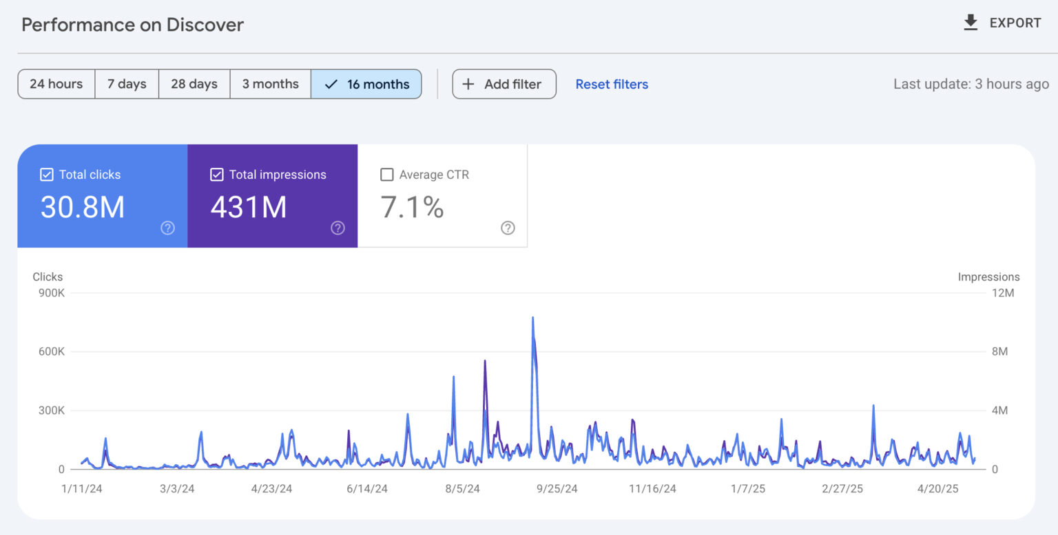 نکته: میانگین CTR در دیسکاور معمولاً بالاتر از نتایج جستجو است (گاهی بین ۵ تا ۲۰ درصد).
