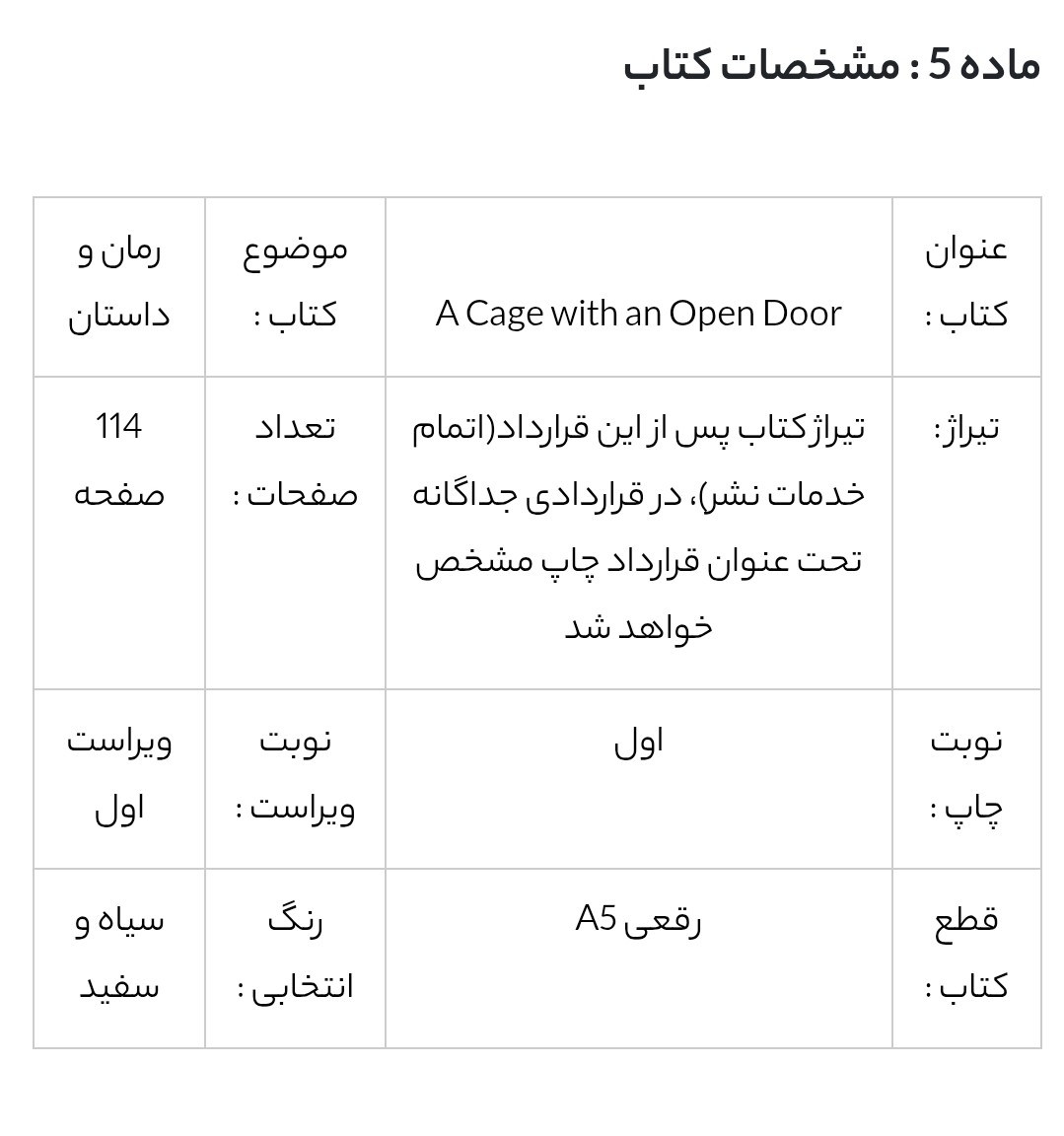 قرارداد چاپ A Cage with an Open Door امروز بسته شد و رویایی که وسط دانشگاه باعث شد خودکار رو روی جزوههای مهندسی بکوبم، به واقعیت پیوست.