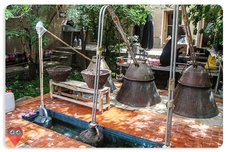 آن موقع فصل گلابگیری بود. ما را به یکی از کارگاههای گلابگیری بردند. دیگها جوش میزدند، بخار گل محمدی همه جا را پر کرده بود، و مردهایی با دستهای زحمتکش مشغول کار بودند.