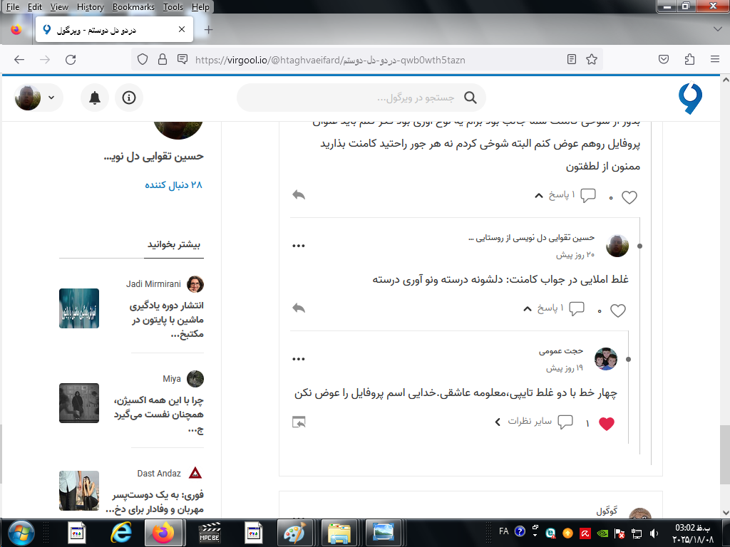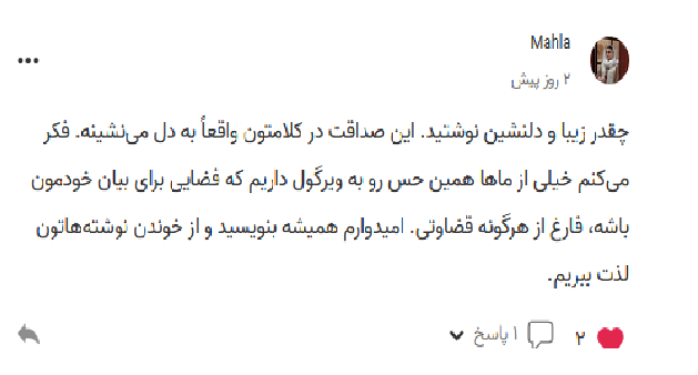 کامنت های نابودکننده : اینقدر ر روحیه لطیفی دارم می خواستم به خاطر همین کامنت بی خیال ویرگول شم اسم پروفایلمم هم عوض کردم عاشق شعر به زباله دان تاریخ پیوست.