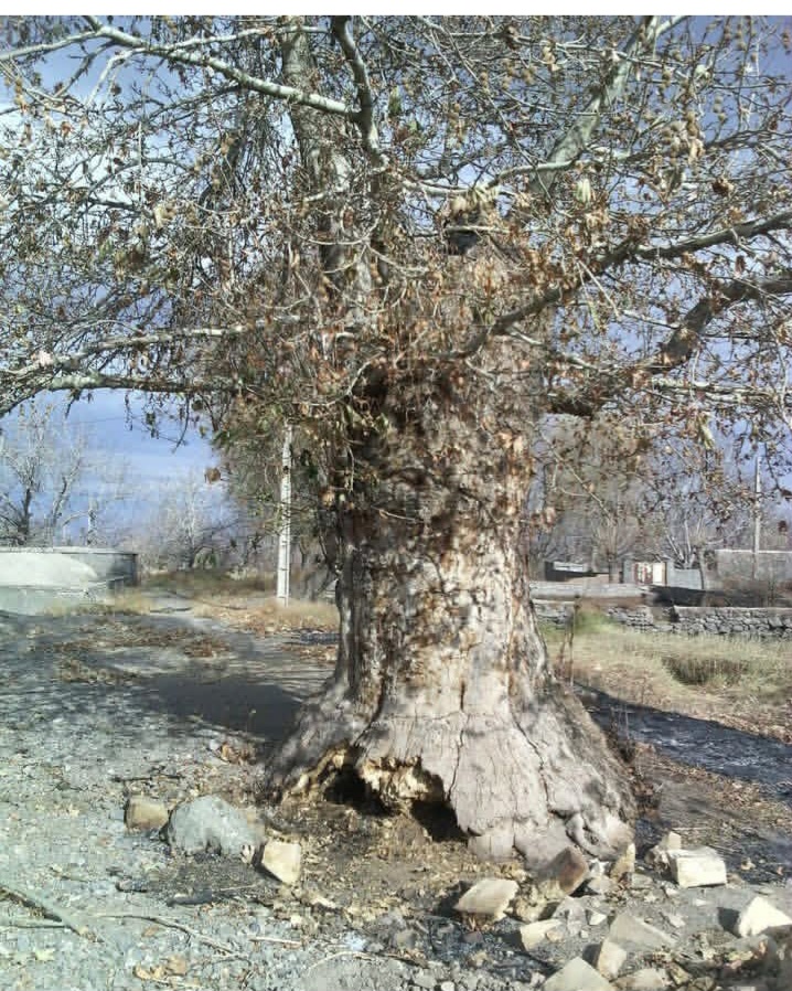 درخت چنار کنار استخر قنات وسط در سالهای گذشته