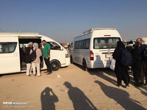 به ما گفتند باید ۱۰ کیلومتر باقیمانده تا حرم را پیاده برویم. بعد از مدتی خبر رسید اتوبوسهایی زائران را تا نزدیکی حرم میبرند. دعوا و جنجال برای سوار شدن شروع شد.