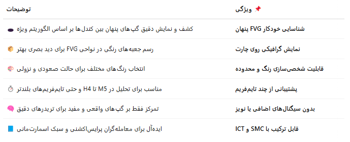 اندیکاتور IFVG - Hidden FVG ابزاری تخصصی برای کشف ساختارهای پنهان بازار است که با دقت بالا نواحی FVG را مشخص کرده و به شما کمک میکند تا با دید بازتر و حرفهایتر وارد بازار شوید. اگر به دنبال ابزار مکملی برای استراتژی اسمارتمانی یا ICT هستید، این اندیکاتور دقیقاً همان چیزی است که نیاز دارید. 🚀📉