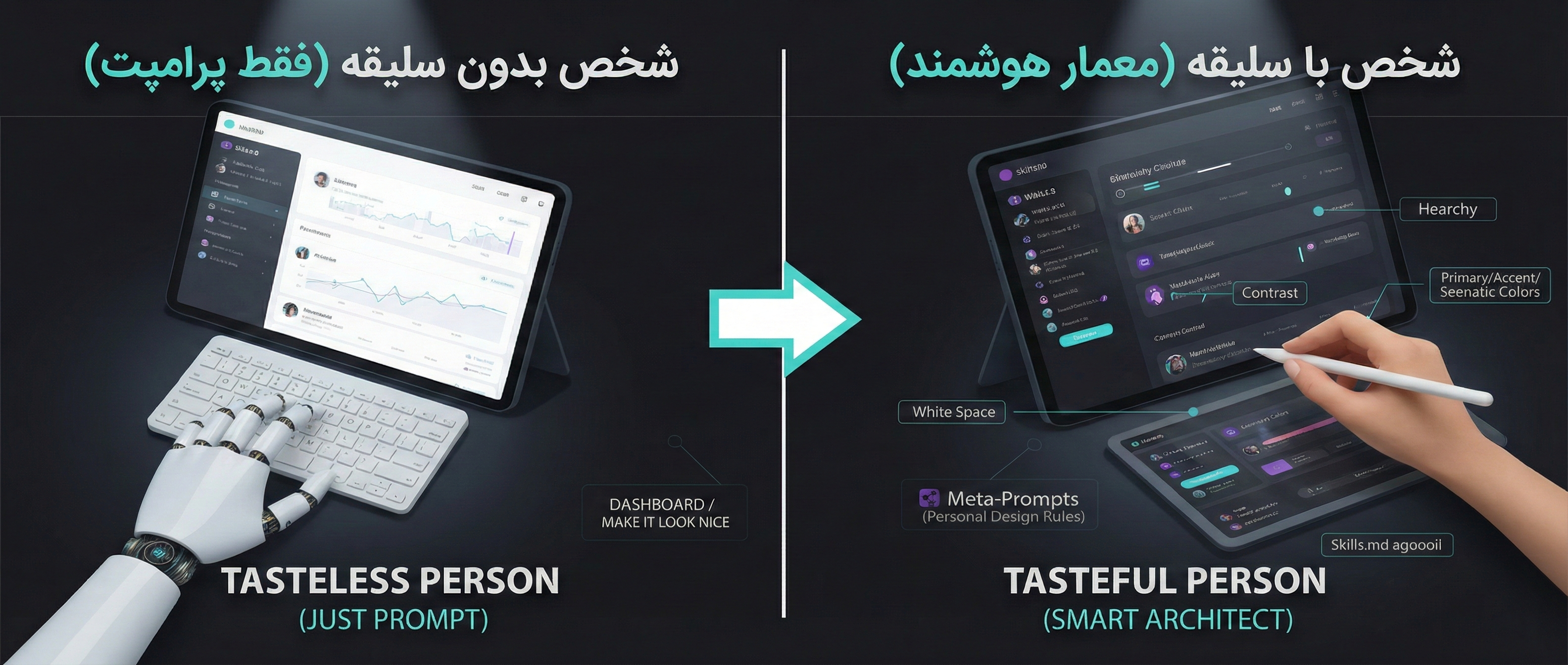 مشکل هیچوقت "پرامپت بهتر" نبود؛ مشکل این بود که من یه مهارت حیاتی رو نادیده گرفته بودم: پرورش سلیقه (Taste).